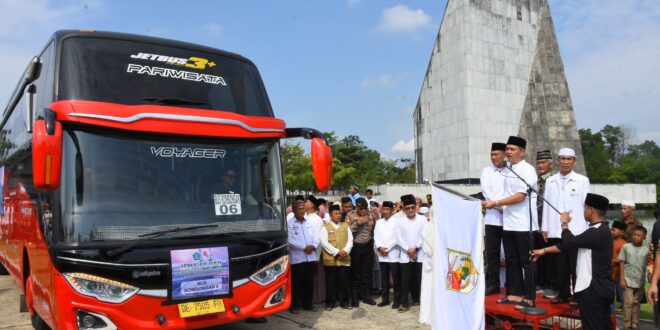 Tulang Bawang Barat, intermedianews.co.id– – Bupati Tulang Bawang Barat (Tubaba) Ir. Novriwan Jaya, S.P., bersama Wakil Bupati Nadirsyah melepas 146 Calon Jamaah Haji (CJH) di Masjid Baitus Shobur, Kompleks Islamic Center Tubaba, Kelurahan Panaragan Jaya, Kecamatan Tulangbawang Tengah. Rabu (21/05/2025).