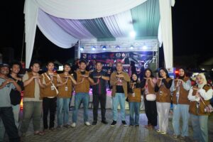 Tulang Bawang Barat, intermedianews.co id–Jajaran Forum Koordinasi Pimpinan Daerah (Forkopimda) Kabupaten Tulang Bawang Barat (Tubaba) menghadiri Malam Puncak Pentas Seni Pelajar, Stand UMKM, Bakti Sosial, dan Donor Darah dalam rangkaian kegiatan Papa Rock n Roll Tubaba, yang digelar di Pelataran Parkir Pasar Pulung Kencana, Rabu malam (21/01).