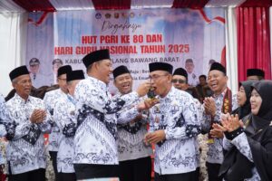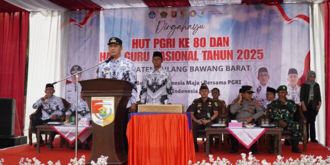 Tulang Bawang Barat, intermedianews.co.id–Pemerintah Kabupaten Tulang Bawang Barat menggelar Upacara Peringatan Hari Persatuan Guru Republik Indonesia (PGRI) dan Hari Guru Nasional (HGN) ke-80 Tahun 2025 di Lapangan Marga Kencana, Kecamatan Tulang Bawang Udik, Selasa (25/11/2025). Upacara tahun ini mengusung tema “Guru Bermutu, Indonesia Maju: Bersama PGRI Wujudkan Indonesia Emas.”.