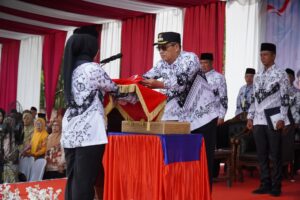 Bupati Tulang Bawang Barat bertindak sebagai Pembina Upacara sekaligus membacakan sambutan resmi Menteri Pendidikan Dasar dan Menengah Republik Indonesia.