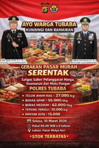 Kapolres Tubaba AKBP Sendi Antoni, S.I.K., M.I.K melalui Waka Polres Kompol Zaini Dahlan, S.H., M.H, di dampingi Kasat Reskrim Akp Juherdi Sumandi, S.H., M.H mengatakan bahwa kegiatan ini merupakan bentuk kepedulian Polri kepada masyarakat, khususnya dalam membantu meringankan beban ekonomi, Pasar murah ini terbuka untuk masyarakat yang ingin membeli berbagai kebutuhan pokok dengan harga lebih terjangkau dibandingkan harga pasar.